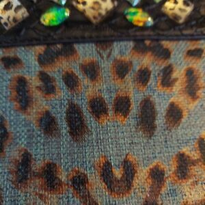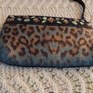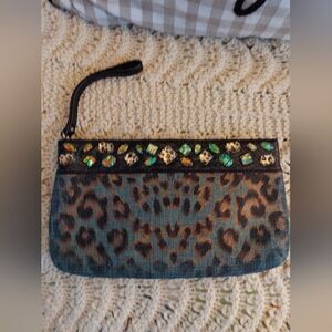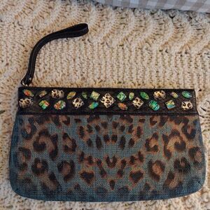 Christian Audigier Los Angeles Wristlet Clutch NWOT Animal Print Coated Linen