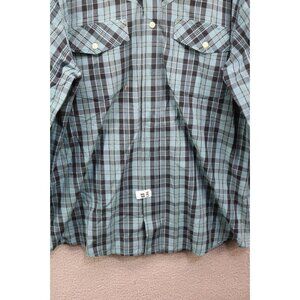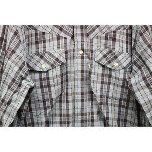 Christian Audigier Men's Plaid Western Shirt-Size Large. Item is in Great Condition. The material is 100% Cotton. Laying flat measuring armpit to armpit it is 23'' and 29'' in length.