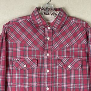 Christian Audigier Shirt Mens S Red Plaid Long Sleeve Chest Pockets Button Up