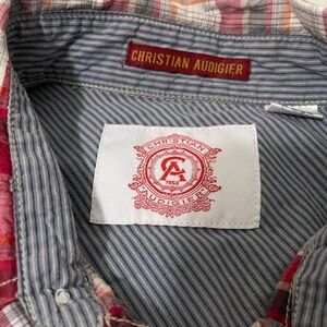 Christian Audigier Shirt Mens XL Red White Plaid Button Up Designer Pockets