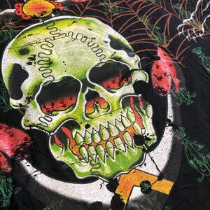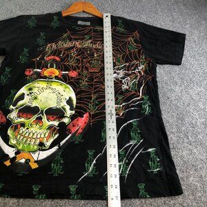 Christian Audigier Shirts Mens Large AOP Short Sleeve Skull Money Spider