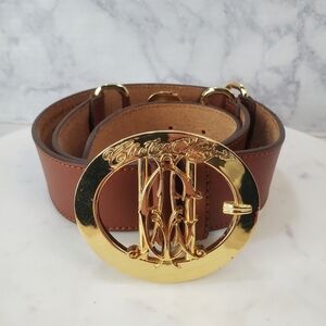 Christian Audigier Belts Special Edition Small Brown Leather Belt Skulls Roses Gold Halloween Punk 90s RARE