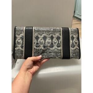 Excellent condition clutch style purse from Christian Audigier-has a snake style pattern with a clear sequin overlay, magnetic type closure