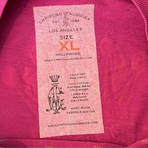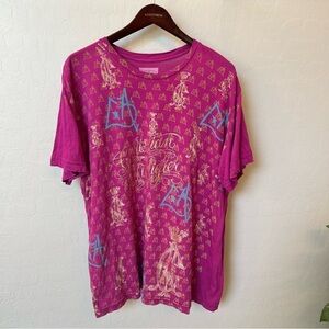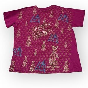 Christian Audigier all over graphic T-shirt, magenta with blue and gold print,XL