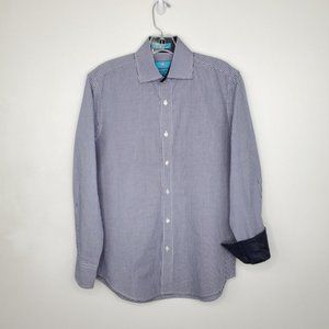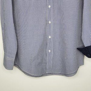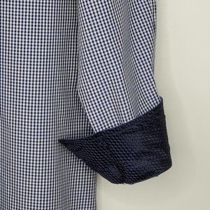 Christian Aujard Paris Navy White Gingham Plaid Check Button Up Shirt
