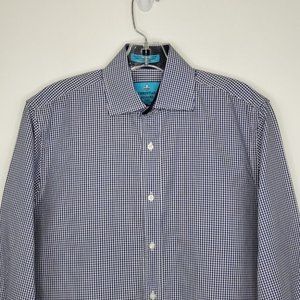 Christian Aujard Paris Navy White Gingham Plaid Check Button Up Shirt Size S