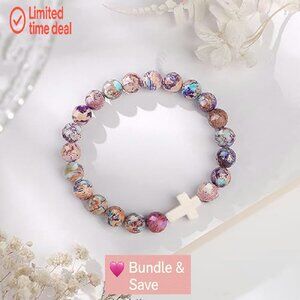 This meaningful bracelet is designed for faith expression and everyday wear. Its natural stone beads and cross charm create a timeless, devotional accessory perfect for religious occasions or personal reflection.