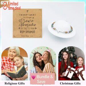 • Style: Delicate metal bracelet featuring a cross charm and an inspirational message. A timeless, religious accessory.