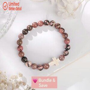 This elegant, faith-inspired bracelet is designed for daily wear and meaningful expression. Its natural stone beads and cross charm create a timeless piece perfect for religious occasions, personal devotion, or thoughtful gifting.