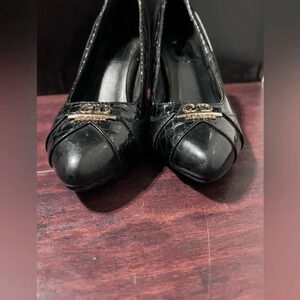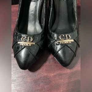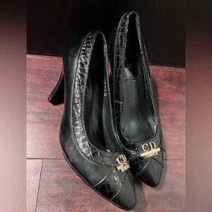 Christian DIOR Heels Shoes Designer Black/Gold Pointed Toe Pumps Size 4 (35) EUC