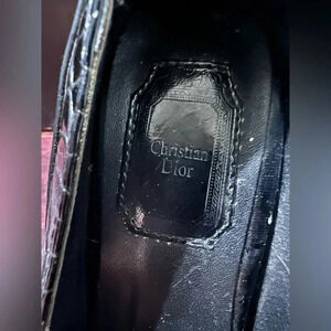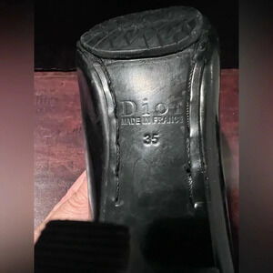 Christian DIOR Heels Shoes Designer Black/Gold Pointed Toe Pumps Size 4 (35) EUC. Beautiful heels with a black quilted like pattern around the shoe and toe area. Embossed with gold lettering on toe. One tiny rubbed area on the inside of left shoe where the heel sits. Please see last photo. Q2684B-018 35