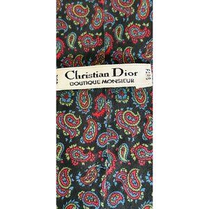 Christian DIOR Paris Silk Tie Blue Red Paisley Design