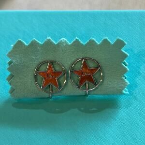 Christian DIOR Star Logo Silver Tone with Gold Tone Clip On Earrings Authentic