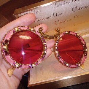 RARE Christian DIOR Vintage 1960s Pink Round Avant Garde Sunglasses
