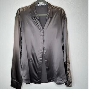 Christian Dior 100% Silk Taupe Brown Multi-Tonal Shimmer Button Blouse 14
