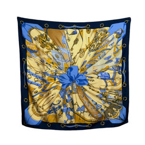 Christian Dior 32” Square 100% Silk Scarf Blue Multicolored Birds & Floral Print