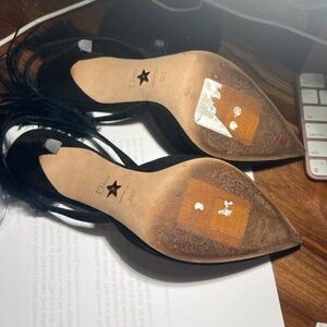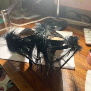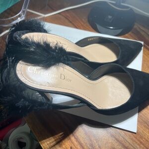 Black suede swing back with feathers I do not have the original box, but they are in a clear box