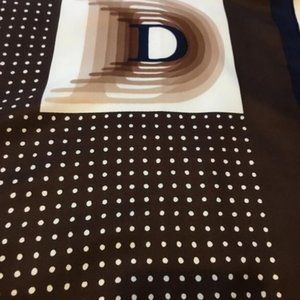 For sale is a RARE, Christian Dior, abstract Trotter logo design, 31" square, silk scarf in shades of brown and blue with five, large 'D' logo in gradient shades of brown, polka dots, 1" deep blue trim, and hand rolled edges! This scarf creates a perfect look for you with a lot of style from Christian Dior! This item has visible signs of wear. All measurements are approximate.