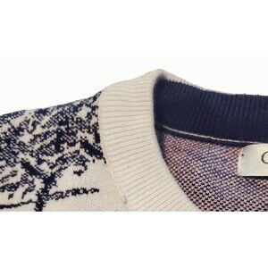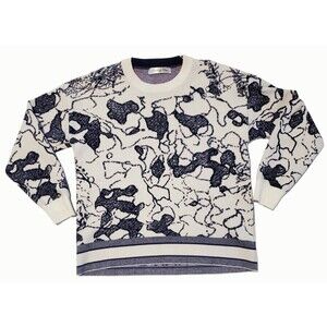 Christian Dior Around the World Cashmere Wool Sweater, Womens M, Ivory and Blue
