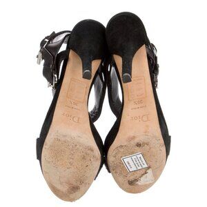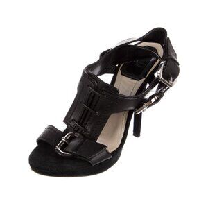 Christian Dior Authentic Solid Black Leather Heels Sandals Slingback 6.5