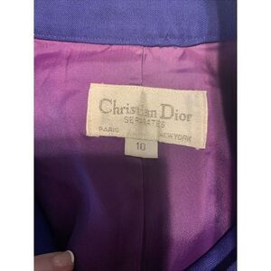 This is a Christian Dior blazer jacket in a solid royal blue color, designed for women in a size 10 (medium). The blazer is made of 100% wool with long sleeves and falls under the style category of a basic jacket. This authentic Dior piece offers a sophisticated and timeless look, suitable for various occasions where a touch of elegance is desired.
