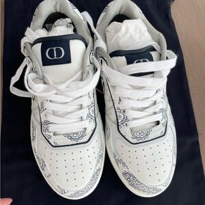 Christian Dior B27 White Navy Galaxy Paisley Calf leather Oblique sneakers NWT