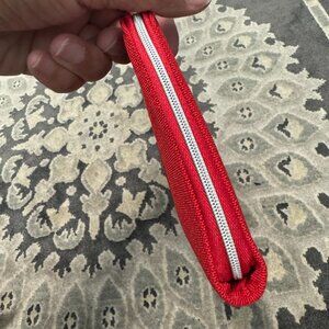 BRAND NEW, UNUSED. Trendy and stylish fabric toiletry bag by high-end designer Christian Dior Beauty. Great for traveling. Dior logo embossed. 100% Authentic. Red velvet makeup pouch with gold zipper pulls.