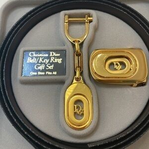 ⭐️Christian Dior Belt, Buckle and Key Chain—Gorgeous!! Black/Brown OS—New in Box