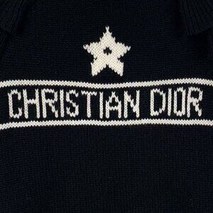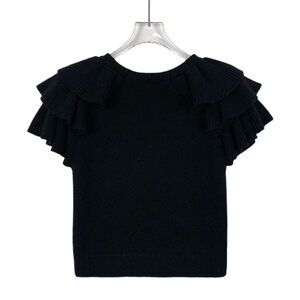 Christian Dior Black Cashmere Knit Top With Ruffled Sleeves & Star Detail