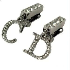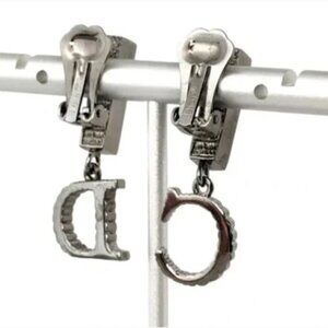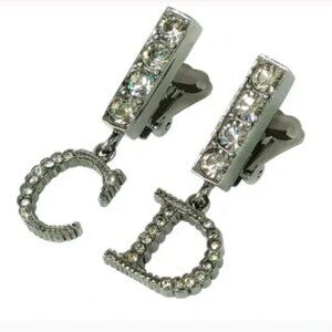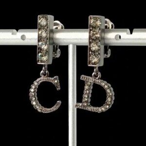 Christian Dior Black Color Rhinestone Logo Swing Earrings