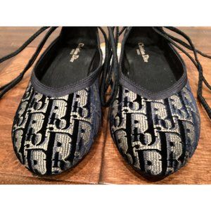 Christian Dior Blue Poeme Laced Ballerina Embroidered Velvet Flats, Size 39.5