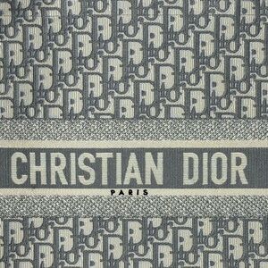 Stylish Christian Dior tote bag in gray. Features iconic logo pattern.