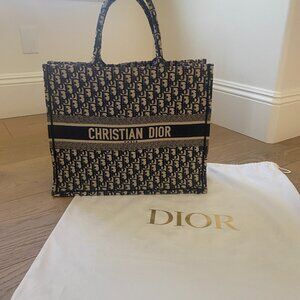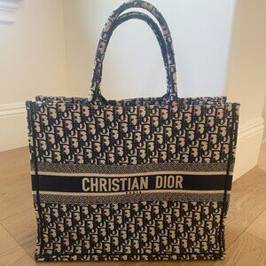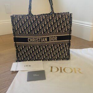 Christian Dior Book Tote Large Navy/Cream Canvas