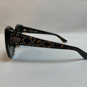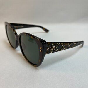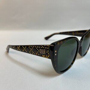 Fashionable Christian Dior brown square sunglasses feature a large square shape and golden stud design.