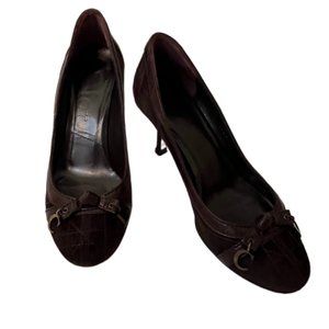 Christian Dior Brown Suede & Leather Pumps with C & D Charms on the top Size 4
