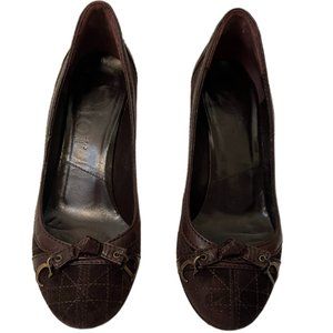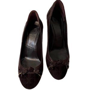 Christian Dior Brown Suede & Leather Quilted Pumps with C & D Charms on the top. 3" Heel Size 34.5 (Size 4 US) Made in Italy These are tiny!