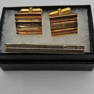 Christian Dior Bullet Back Gold and Silver Tone Cufflinks and Tie Bar