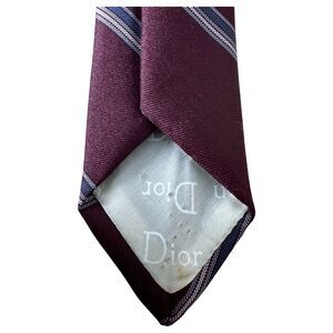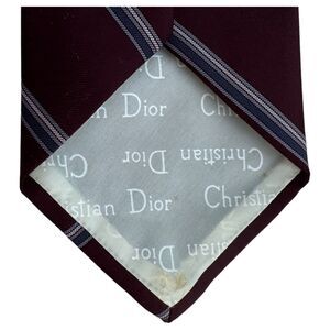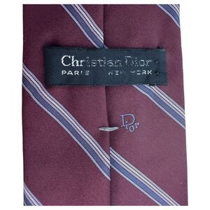 Christian Dior Burgundy Navy Designer Paris New York Diagonal Stripe Tie