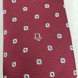 Christian Dior Burgundy Ribbed Tie Flower Fleurette Silk Blend