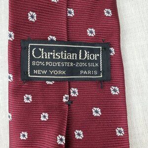 Christian Dior Poly/Silk Blend Ribbed Texture Burgundy Tie With Small Fleurettes