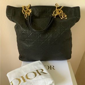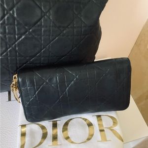 Christian Dior CD Cannage Bag Leather Black gently worn very little. is the bag and wallet. Measurements: 14 X 13 X 3.5 Inches 4 at the base