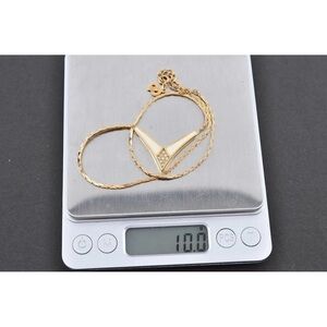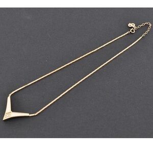 Christian Dior CD Logo Light Stone V-Shaped Necklace Gold Plate Authentic GUC
