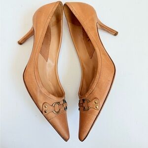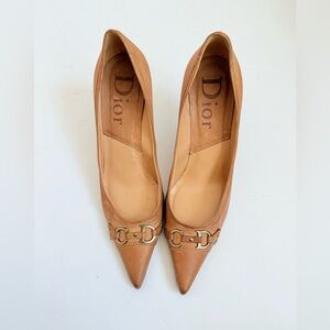 Christian Dior Camel Brown Leather Vintage CD Logo embellished pumps EU 38.5