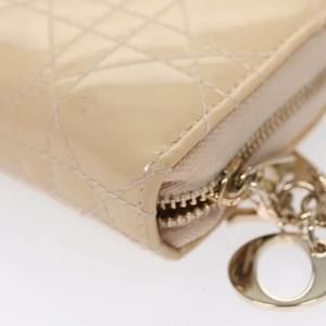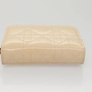Christian Dior Canage Card Case Enamel Beige Auth ar13203