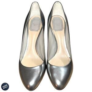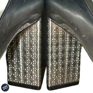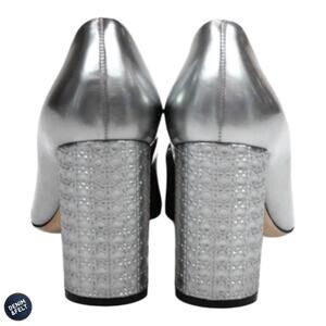 Christian Dior Cannage Block Heel Pumps 38.5 Silver Metallic Made in Italy