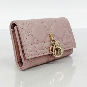 Christian Dior Cannage Leather Key Case in Dark Pink Champagne for Women