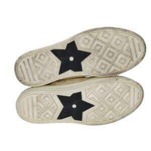 Designed in gold and white canvas with intricate embroidered accents, these chic sneakers feature leather and rubber trim, a classic lace-up design, and round toes for timeless wearability. Perfect for pairing with denim, dresses, or casual-chic outfits, these sneakers blend luxury design with everyday comfort.