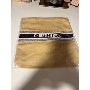 Stylish and lightweight Christian Dior promotional tote featuring a cream canvas body and signature navy logo stripe. This chic GWP (gift with purchase) item is perfect for everyday use, errands, or gifting to a Dior fan.