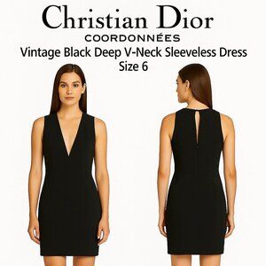 Christian Dior Coordonnées Vintage Black Deep V-Neck Sleeveless Dress – Size 6