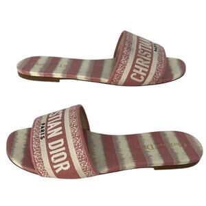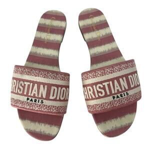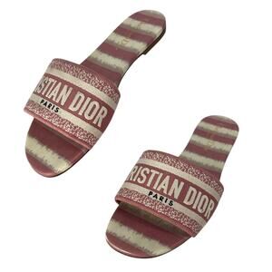 Christian Dior Cotton D-Stripes Embroidered Dway Mules Slide Sandals .